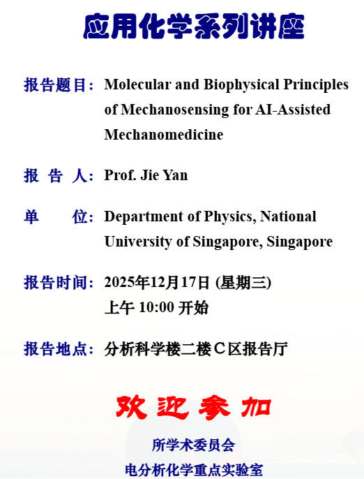 12月17日应用化学系列讲座-Professor Jie Yan
